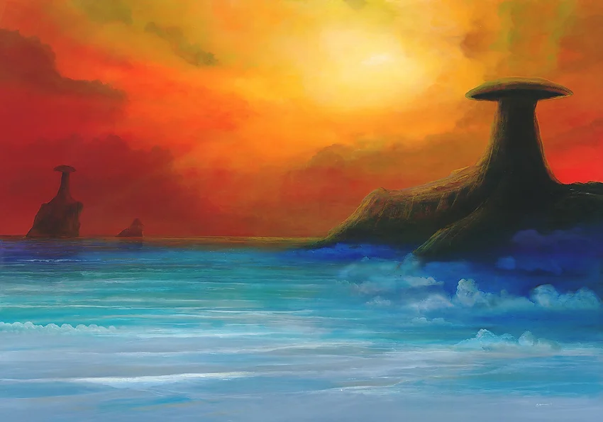 Insgesamt ist "Steinpilze" ein eindrucksvolles Gemälde, das den Betrachter zum Nachdenken über die Natur, die Beständigkeit und die Stärke des Lebens anregt. Es ist eine visuelle Metapher, die dazu einlädt, die Bedeutung und den Zusammenhang zwischen verschiedenen Elementen des Lebens zu erkunden.