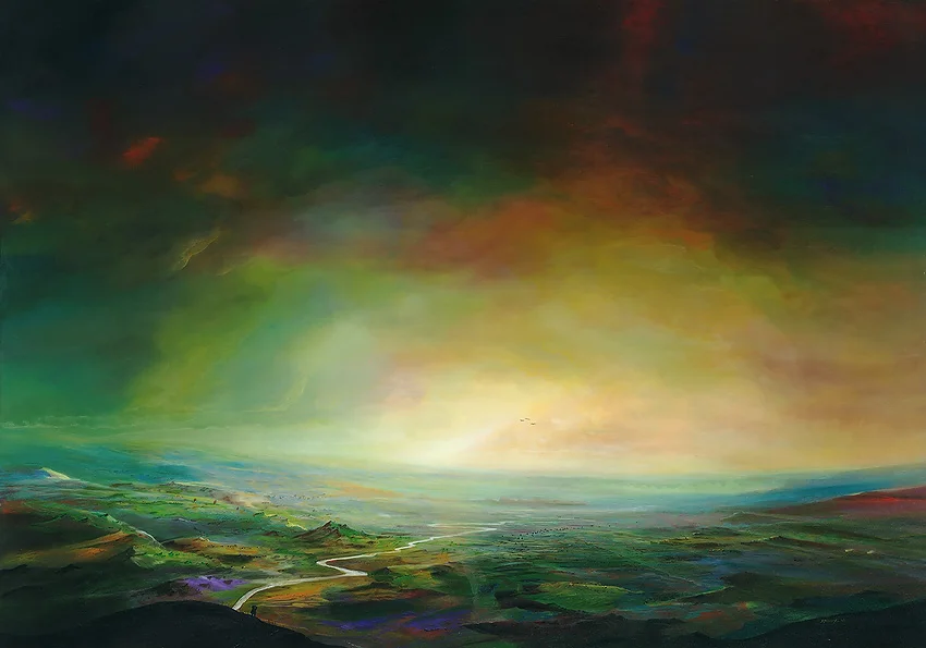 Neuland – Acryl auf Holztafel mit dem Thema weite Landschaften.