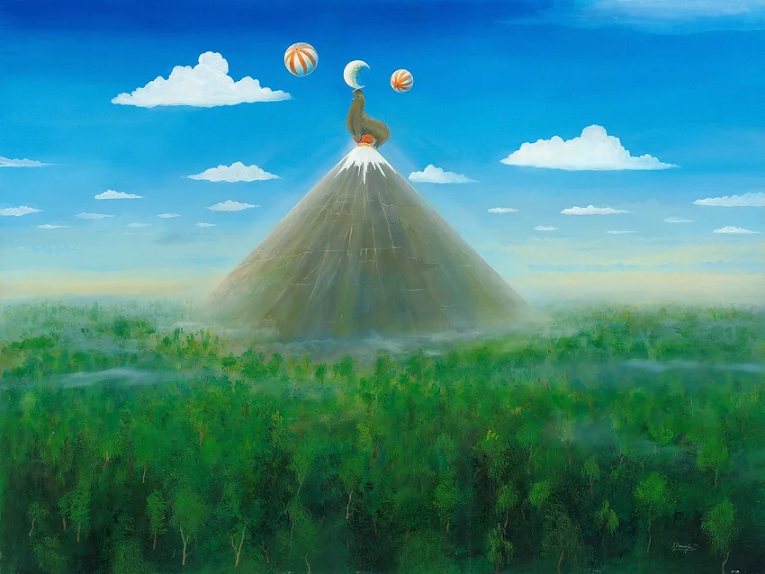 Das Gemälde, das einen Seelöwen zeigt, der geschickt auf einer Bergspitze balanciert, ist eine eindrucksvolle Darstellung der natürlichen Fähigkeiten und des Geschicks der Tiere im Vergleich zu denen von Menschen. Es veranschaulicht die erstaunlichen Fähigkeiten und Instinkte, die in der Tierwelt vorhanden sind und oft von Geburt an kommen.