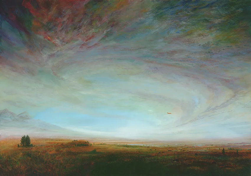 So also vermittelt das Gemälde ein Gefühl von Bewunderung und Ehrfurcht vor der Freiheit, sowohl in der Natur als auch im Leben selbst. Es ermutigt den Betrachter, nach Freiheit zu streben, sich von Einschränkungen zu befreien und die unendlichen Möglichkeiten des Lebens zu erkunden, ganz wie der Milan, der majestätisch über den grauen Himmel schwebt.