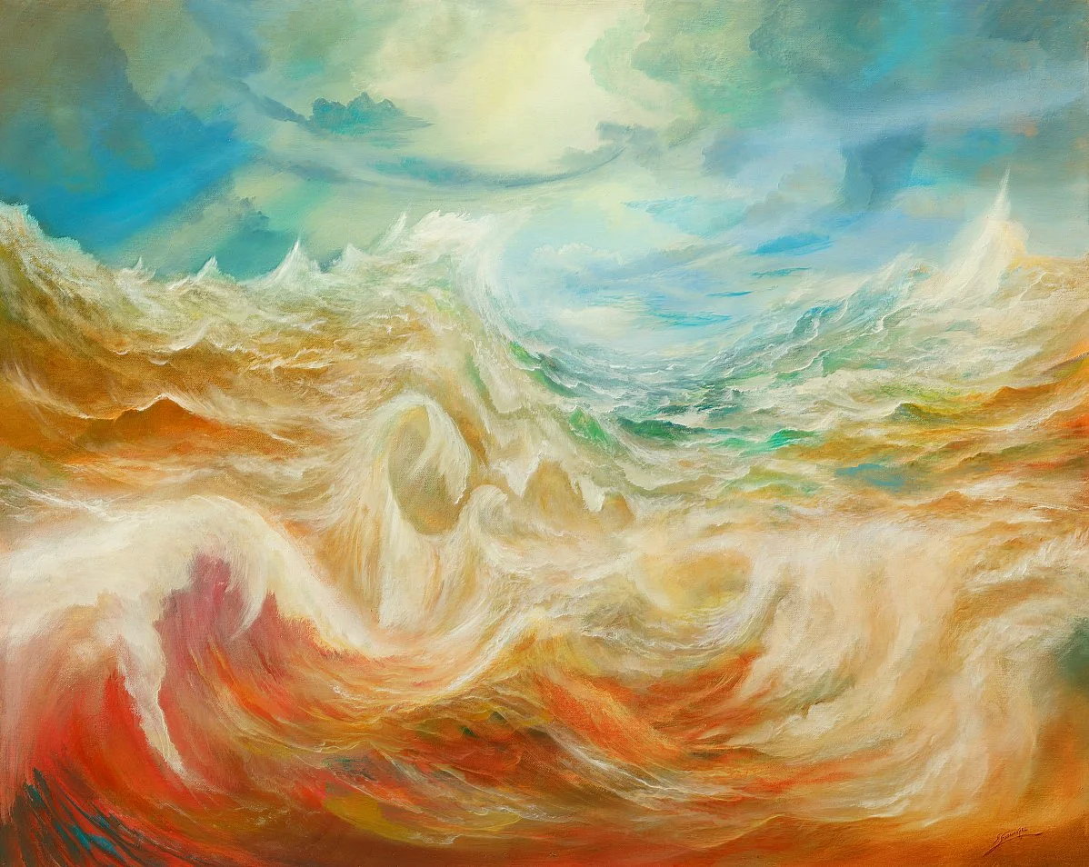 Farbwellen – Ölbild auf Leinwand mit dem Thema Katastrophenbilder.