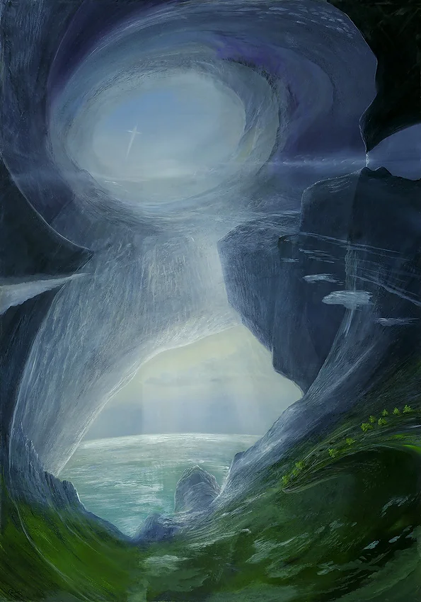 Insgesamt lädt dieses Gemälde dazu ein, über die Verbindung zwischen der materiellen und spirituellen Welt nachzudenken. Es fordert dazu auf, die Beziehung zwischen diesen beiden Ebenen zu erkunden und die Suche nach einem tieferen Verständnis und Sinn im Leben fortzusetzen.