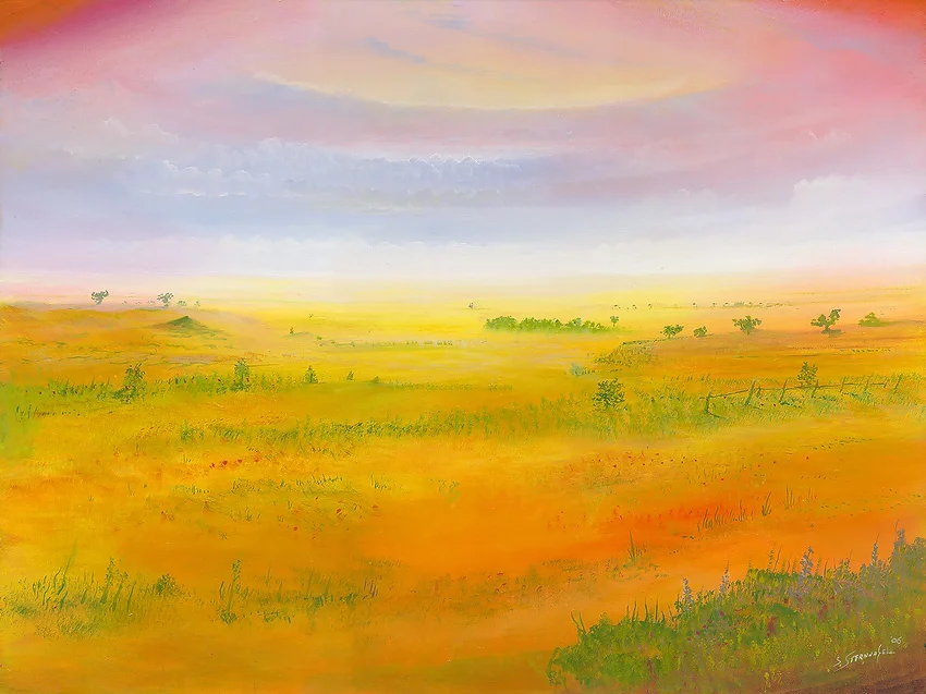 Insgesamt verdeutlicht dieses Gemälde die globale Fähigkeit der Farben, Emotionen und Stimmungen hervorzurufen. Die Kombination von Gelb, Violett, aber auch rötlichen Tönen an den oberen Ecken, gleich einem Vorhang, erreicht eine dynamische visuelle Erfahrung, die den Betrachter anspricht und in die Szene hineinzieht. Es erinnert uns daran, wie Farben in der Kunst und im Leben selbst eine wichtige Rolle spielen und wie sie unsere Wahrnehmung und unser Empfinden beeinflussen können.