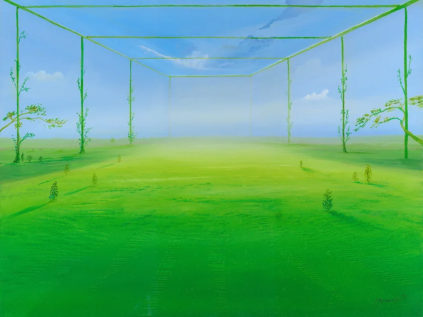 Das Gemälde lädt den Betrachter ein, über die Beziehung zwischen menschlichem Schaffen und der natürlichen Welt nachzudenken. Es erinnert uns daran, wie wichtig es ist, unsere Architektur und unseren Lebensraum im Einklang mit der Natur zu gestalten. Es verkörpert die Schönheit einer Welt, in der menschliche Bauten nicht als Fremdkörper, sondern als organische Bestandteile des natürlichen Ökosystems wahrgenommen werden können. Dieses Kunstwerk ermutigt dazu, über die Harmonie zwischen Mensch und Natur nachzudenken und sich für eine nachhaltige und integrierte Zukunft einzusetzen.